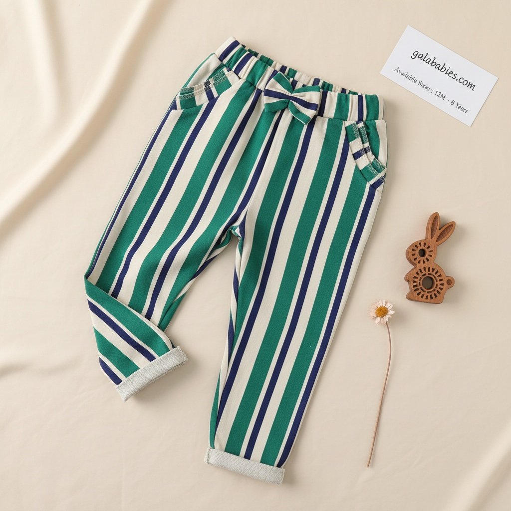 🔹 Stylish green & navy vertical stripes for a smart, trendy look